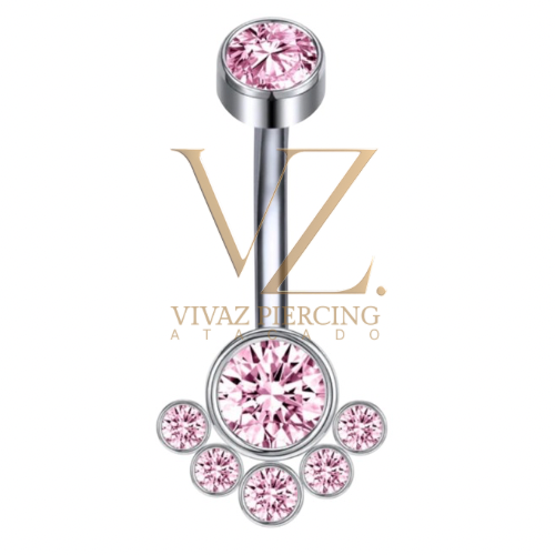 O design com pingente em formato de patinha rosa adiciona um toque fofo e exclusivo, ideal para perfurações de umbigo que valorizam o visual de forma delicada.